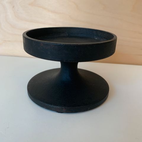 Gammel dekorativ trearmet “sølvplet” lysestage fra Swanski (Swarovski) med svungne arme og dekoration på fod og lyskranse.
