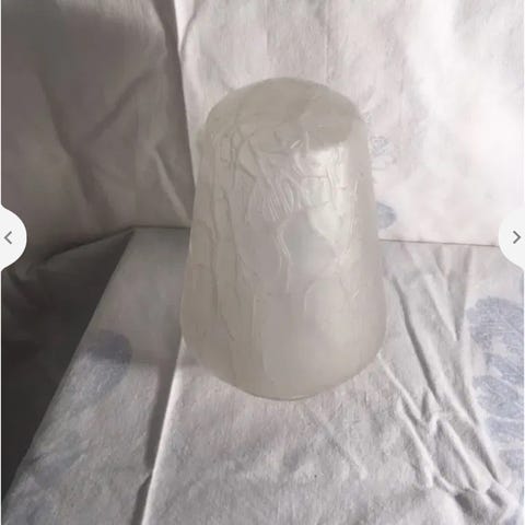 Lampekuppel i røgfarvet glas med lidt hak i kanten hullet er 11,6 cm indv.