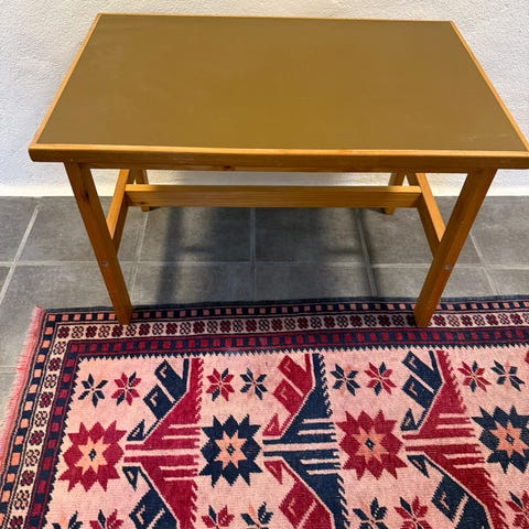Mærke: A-table. Brugt, men skønt bord med 6 skuffer. Nypris 2600kr Vores datter har desværre tegnet enkelte streger på nogle af skufferne som ikke er forsøgt fjernet. Deraf den lave pris.