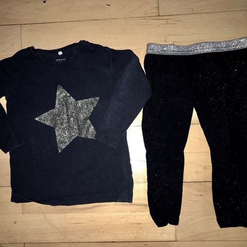 Blandet tøj, 68 tøjpakke tøjpakker grå leggings body bluse , Trøje guld glimmer krone lyserøde hjerter , str. 68, 68 tøjpakke tøjpakker grå leggings body bluse