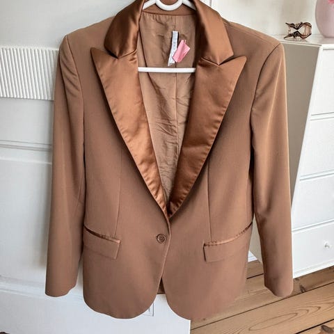 Mørkeblå / blå-sort nålestribet blazer i str S.