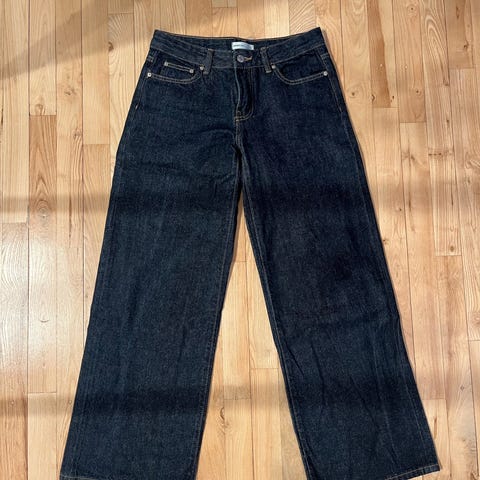 Str 36, kun brugt ganske få gange. Ingen spor af slid/brug. Fed mørkeblå farve. Mid waist. Haves også som low waist str 34 i samme farve. Nypris 399,-