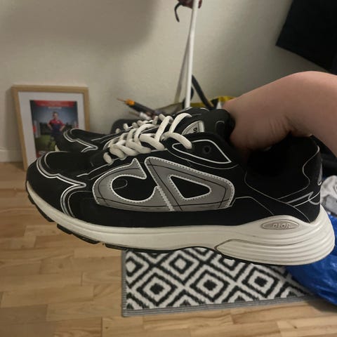 Dior sneakers i sort farve, størrelse 44. Skoene har et moderne design med detaljer i hvid kontrast og er fremstillet med fokus på komfort og stil.