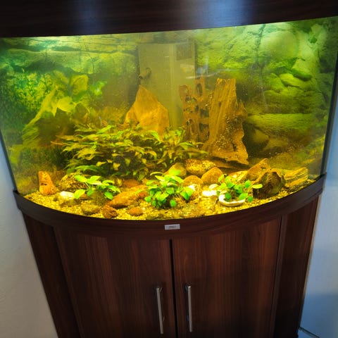 Standen er virkelig flot, ingen ridser i glasset. Akvariet er helt tæt og der medfølger originalt lys og pumpe.