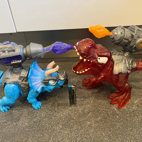 En stor grå/lyseblå dinosaurus (T-rex) på 30cm sælges.