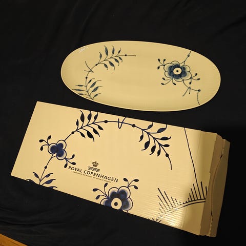Det smukke Royal Copenhagen Blå Mega Riflet fad er skabt til smukke serveringer. Servér direkte fra ovnen og lad dine serveringer stjæle opmærksomheden