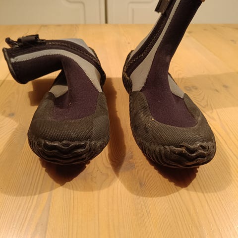 Neoprensko til brug for kajakroning eller vinterbad eller lign. De er i størrelse 39.