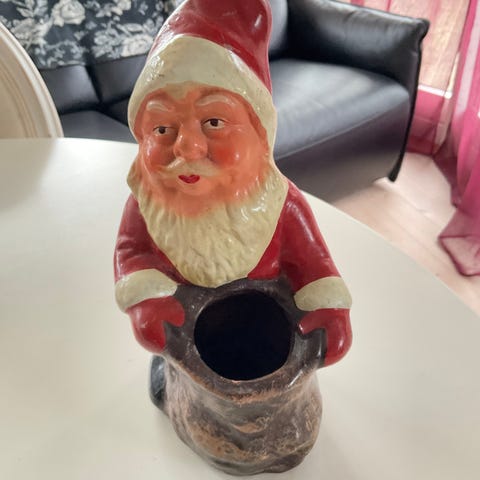 nisse, Gl.keramik nisse.Han kan bruges som potte skjuler da han har hul rum i træ stammen.Han fungerer også som lysestage til et fint lille starinlys.