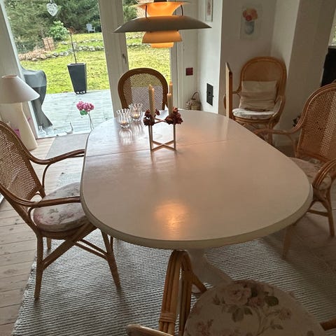 Spisebord + stole - fyrretræ hvidlarkeret