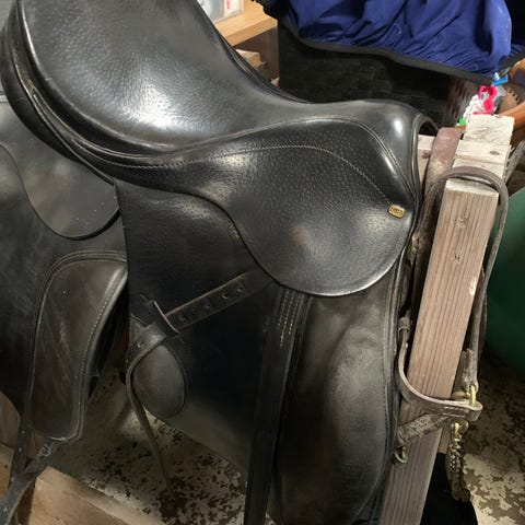 JC sadel i sort læder. Materialet er slidstærkt læder, velegnet til daglig brug.Lækker sadel at sidde i , men sælges da jeg har fundet en der ligger bedre på min traver. Smal bom .17”kom evt med fornuftigt bud