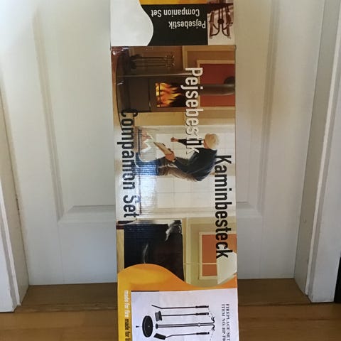 Sæt bestående af indtager, skovl og kost i brugt stand
