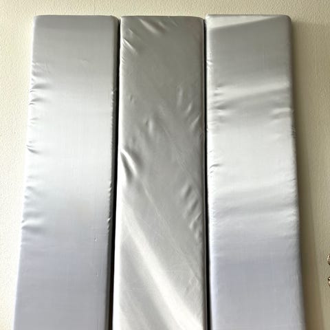 De er lavet i cellelukket skum med træ-ramme betrukket i jute-stof, samt fire øskner på bagsiden til forskellige ophæng: væg eller loft.