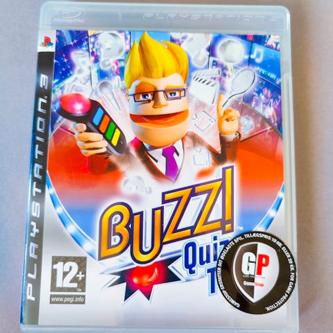 SĂŚlger et komplet sĂŚt Buzz! quiz-controllere til PlayStation â perfekt til quiz, grin og hyggeaftener med venner og familie đŽđ