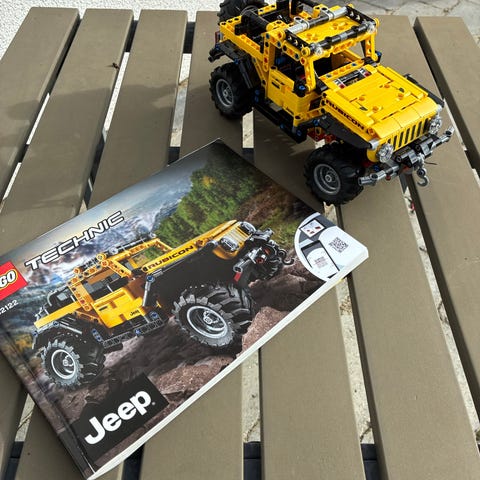 LEGO Technic Off-road bil med store hjul, sort og grøn farve. Modellen er designet til at ligne en terrængående bil med robuste dæk og detaljeret karrosseri. Egnet til leg og samling.