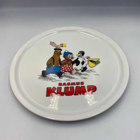 Rasmus Klump 4 pandekage tallerkner med en diameter på 24 cm. Tallerknerne har forskellige motiver fra Rasmus Klump serien. Materiale og yderligere detaljer er ikke angivet.
