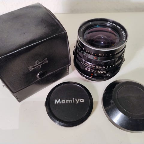 Fantastisk skarp makro til Mamiya RB mellemformat og den er i god stand og med præcise lukkertider. Den kommer med Mamiya 45 mm mellemring (No. 1), så du kan lave 1:1 makro eller produktfoto.