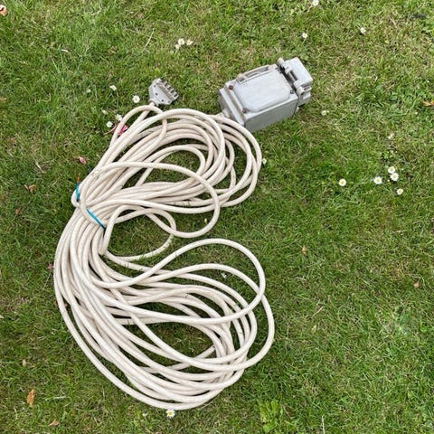 Soryano 16A 400V el-kabel med stik. Kabel med rød og grå stik, designet til elektriske installationer med 16 ampere kapacitet og 400 volt spænding.