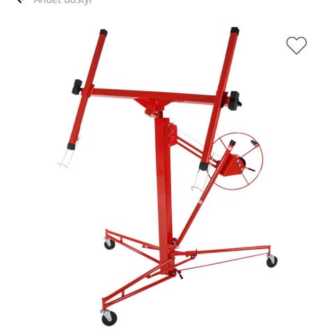 Gipspladeløfter med håndsving til nem og ubesværet håndtering af gipsplader under installation. Designet til at lette løft og placering af plader i loft og væg.