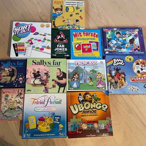 Lille Storm børnespil med flere puslespilsbrikker, der forestiller forskellige scener og aktiviteter. Spillet er designet til børn og indeholder farverige illustrationer med temaer som sport, leg og dagligdags situationer.