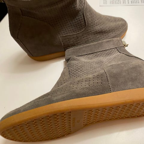 Dame ankelstøvle, som chelsea boots fra Ambitious i brun ruskind med lettere glattet snude, for et vintage look. Sidepaneler med elastik samt strop bagtil for nemmere påtagning. I meget fin stand. Kun brugt få gange.