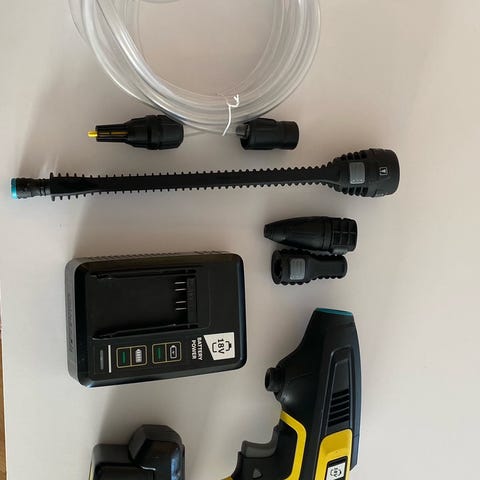 Der medfølger Lance, batteri og oplader foruden trykrenseren.