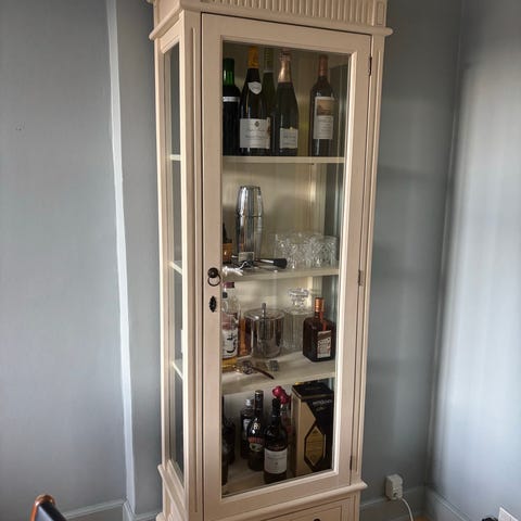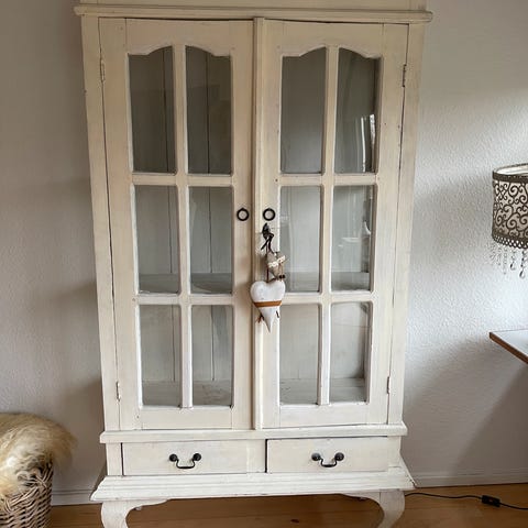 Elegant vitrine i et tidløst og harmonisk design, malet i en blød hvid nuance, der passer ind i både moderne og klassiske hjem.