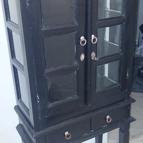 Skabet har en let og luftig fremtoning med glaslåger og god plads til at udstille favoritkeramik, glas eller bøger.