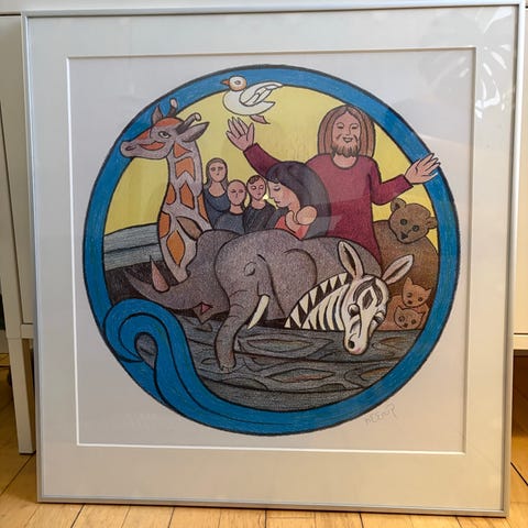 Dejlig #henryheerup tryk “Noahs ark”. Påklæbet tyk kartonplade.