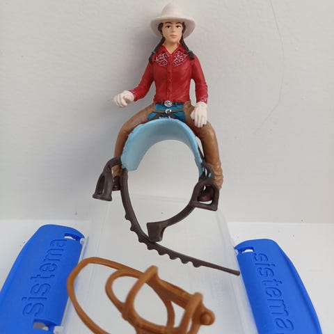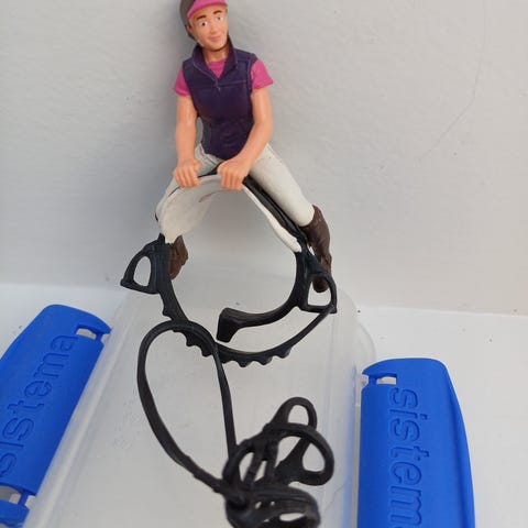 Schleich kamel ørken beduin rytter figur i detaljeret design. Han mangler desværre hvad han har haft i hænderne, ( tror det var pisk og sabel? ) men er stadig ret sej. På sidste foto kan man også se at der er skrevet navn på. Derfor pris.