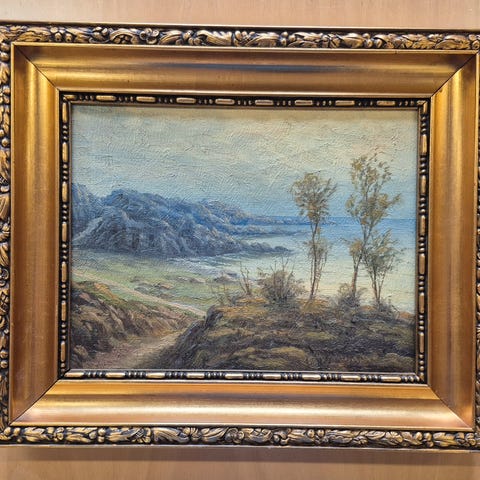 Et smukt gammel landskabs’ maleri , med en helt utrolig smuk guldramme , signatur ! Tror det er JACOB GIBSKOV, har bag på et hjørne et lille stød, ( se billed ) , mål 40 x 40 cm , Søgeord! Billede , Samler maleri, indbo, indretning, Deco, kunst, dekoration, pynt , SENDER KUN MED DAO ELLER AFHENTNING.