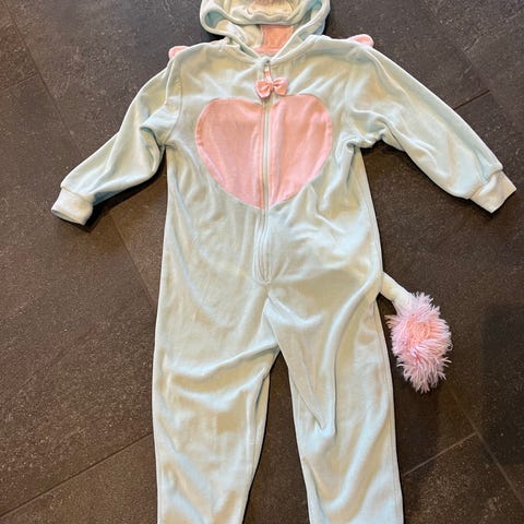 Enhjørningedragt til hyggetøj eller udklædning i størrelse 116 lavet af polyester. Multifarvet dragt og inkluderer en hætte med pynt. Lavet af blødt materiale.