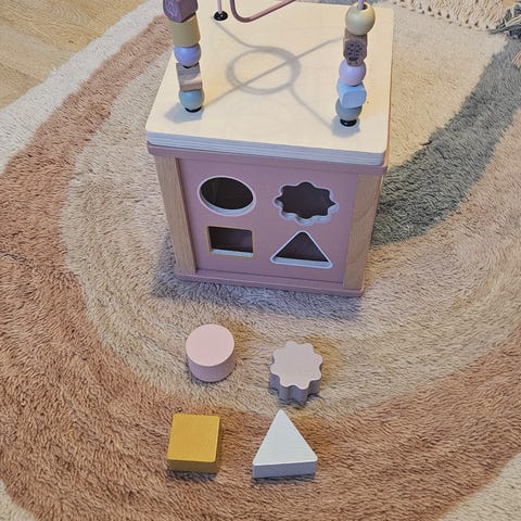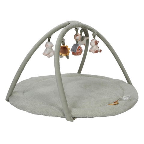 Little Dutch babylegetøj aktivitetsmåtte i blødt materiale med hængende legetøj. Designet til spædbørn og småbørn for at stimulere sanser og motoriske færdigheder.