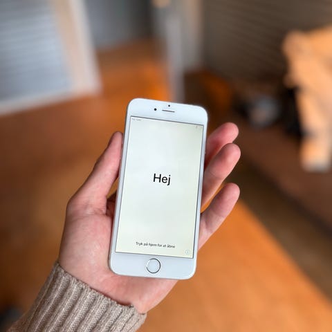 Nulstillet og klar til brug, inkl. headset.
