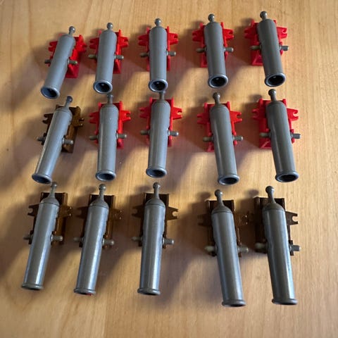 Her sælges 6 kanoner samlet for 135kr.