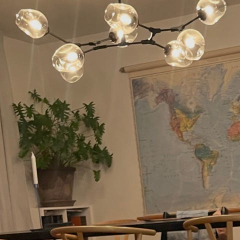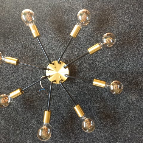 Vi har fået nye lamper over spisebordet og har desværre ikke plads til disse to. Pærer medfølger, men der er flere af dem - 3 i den ene lysekrone og 5 i den anden - der skal skiftes (det har vi ikke gjort da vi alligevel skulle have nye lamper).