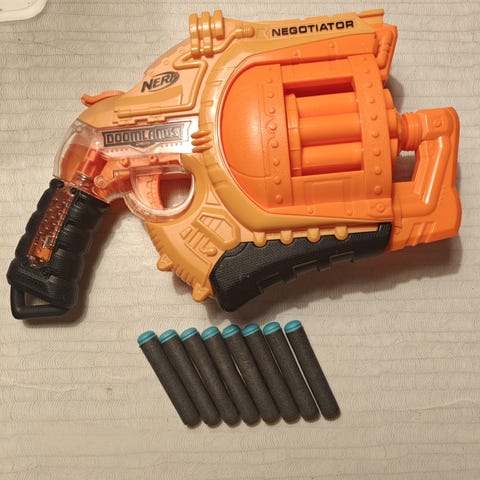 Nerf-type mini Blaze Storm legetøjspistol med to skumpile. Fin stand, brugt meget lidt.