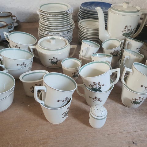 Hjertegræs spisestel. Mange dele. I pæn stand. Samlet pris.