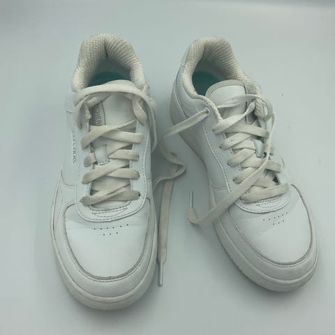 klassisk look Skechers D'Lites - Fresh Start. Denne sporty snøresko har en glat læder- og syntetisk overdel med en polstret Air-Cooled Memory Foam indersål.