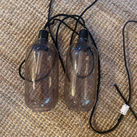 To stk nye Norman amp lamp med røgfarvet glas. Aldrig brugt. Inkl. nye uåbnede pærer. 1 stk 400 kr eller begge for 600kr.