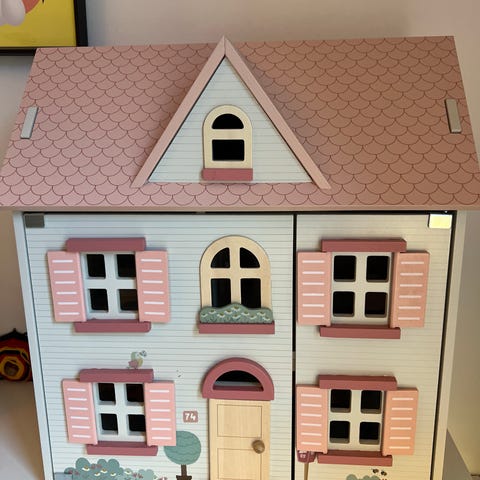 Dukkehus med inventar og div. Gurli Gris og Bluey figurer