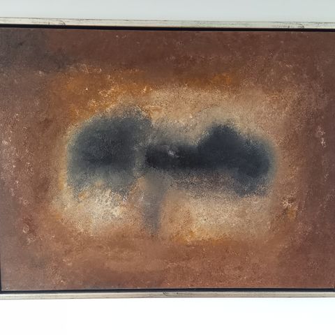 Maleri med arabisk kalligrafi i røde og gule toner. Kunstværket indeholder detaljerede kalligrafiske elementer og abstrakte farvefelter. Passer til vægdekoration i hjem eller kontor. Medfølger træstamme. Måler 95x65 cm