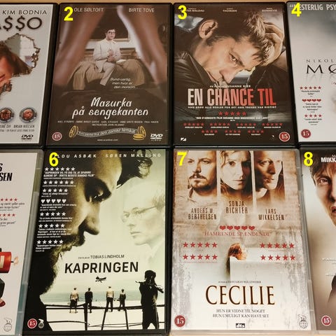 Samling af DVD-film inklusive titlerne Lykkevej, Prag, Klovn (helt ny), Anja & Viktor 2, Elsker dig for evigt og Monas Verden.