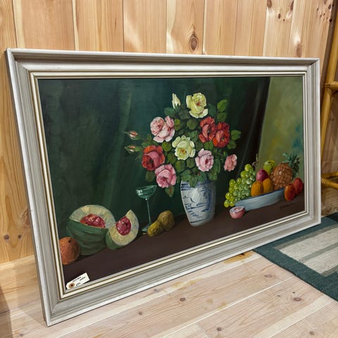 Stort originalt oliemaleri – klassisk blomsterstilleben – flot guldramme