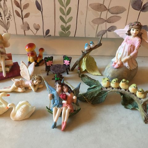 Indeholder en fe-dukke og tilbehør med lille fe-dør/hus.