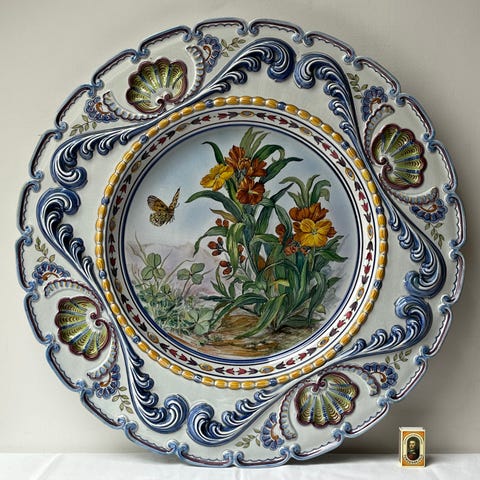 Væg platte, Vintage, Stort smukt vintage fajance fad