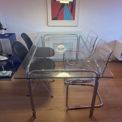 Glas spisebord med kirsebær stel