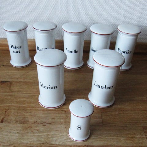 Krydderi krukker i porcelæn - 8 stk. fra Bing & Grøndahl