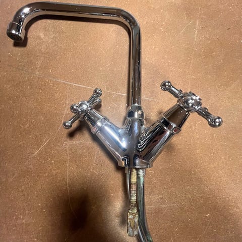 Toni køkken 1 huls armatur i bruneret messing ,nyt aldrig taget i brug kan evt leveres med firkantet 200 mm tud istedet for rund tud