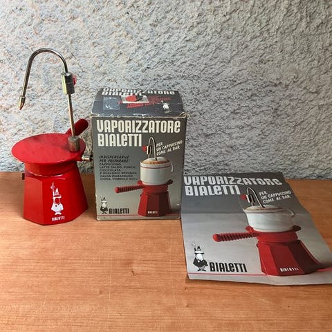 Vintage 6 koppers espresso kande fra Bialetti. Sød detalje med kaffebønne knop på toppen. Ellers en standard Bialetti espressokande i rigtig god stand. Har købt nyt gummibånd til den for nyligt. Sælges kun da den ikke virker til induktion!