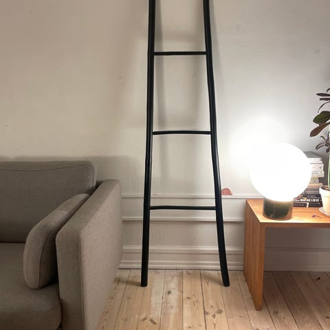 Stige i træ, købt i Bilka i august 2025. Brugt til hems. Har nu fået en trappe og skal ikke bruge stigen mere.